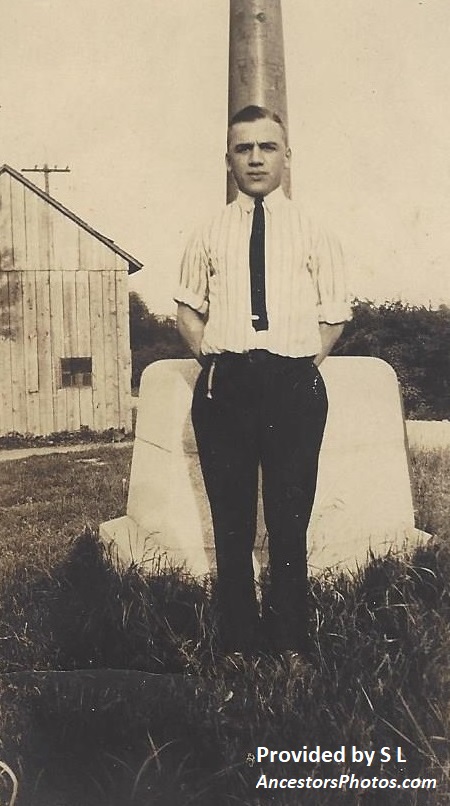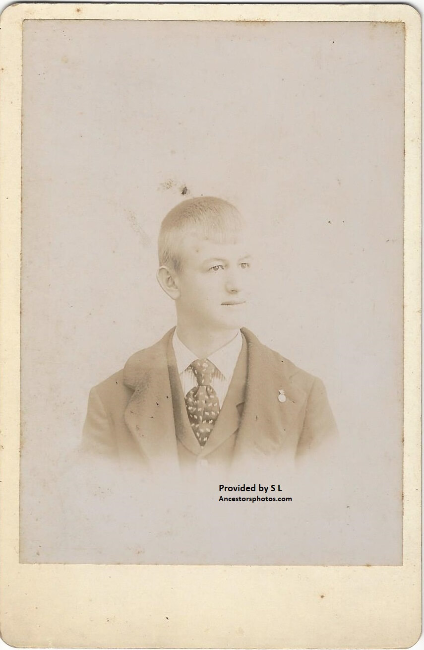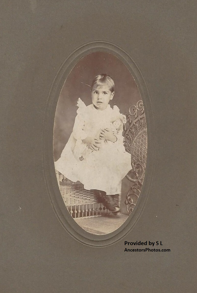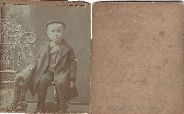 Very old and small photo of a young boy from Raymond Smith’s loose photo collection.  Lots of Indistinguishable writing on back